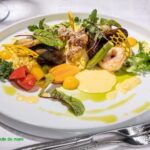 Cotlet de porc, cartofi cu rozmarin, piure de țelină, sparanghel, legume caramelizate