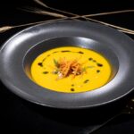 Dovleac, semințe de dovleac, smântână vegetală, usturoi, crutoane